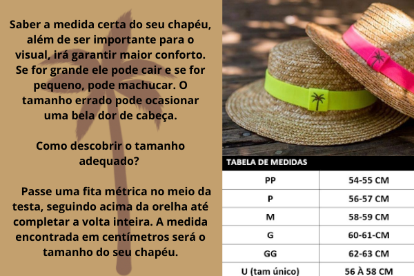 Tamanho da Aba do Chapéu entre 7 e 8 cm.